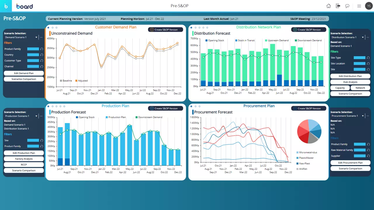 Die Board-Plattform verfügt über vorgefertigte Reports und interaktive Dashboards, die folgende Bereiche abdecken: